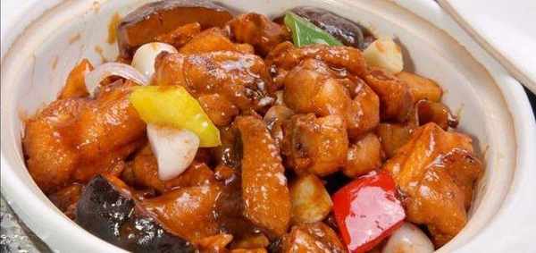 2.煲仔裡熱油。放入蒜薑片幹蔥頭煸炒制香,接著倒入雞塊和香菇翻炒。倒入適量的水,小火燜制入味時,改中火放入青紅椒片收汁即可。