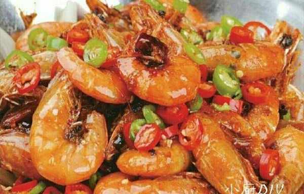 大蝦500克,青紅椒100克,辣椒幹適量,蒜薑片5克。