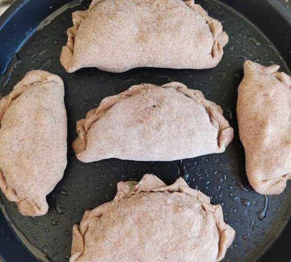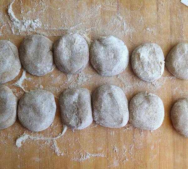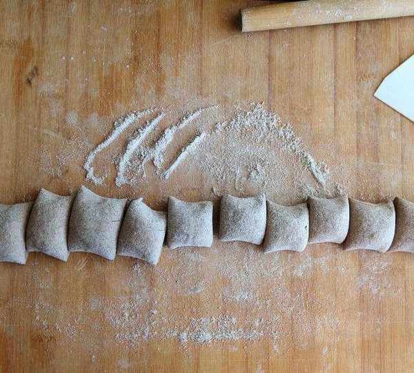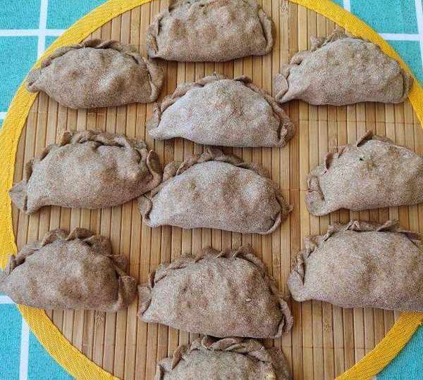 第25步、包成餃子形,把四周的皮捏成褶。