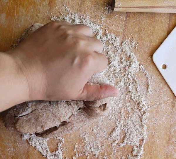 第19步、面醒好,放薄面揉勻。