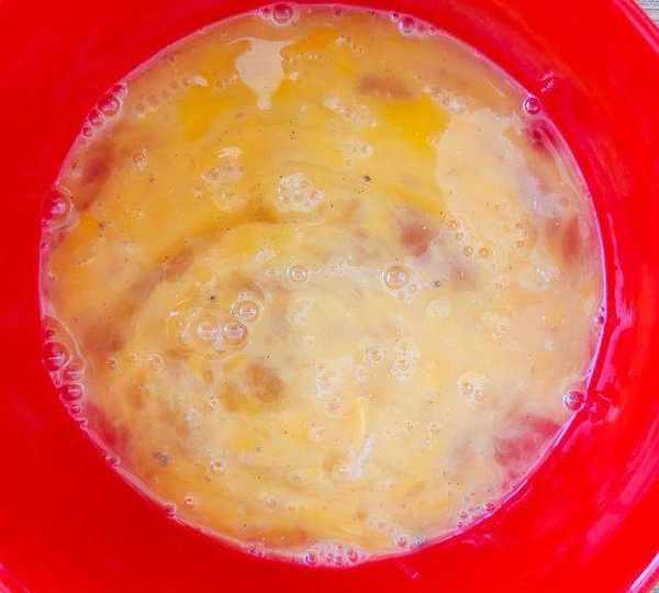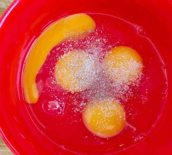 第8步、雞蛋打散,加入黑胡椒粉和適量食鹽。
