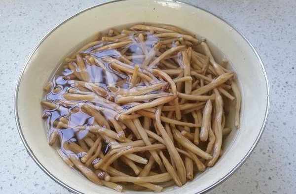 第一步就是泡水,所有的幹貨都要經歷這樣一個步驟,幹黃花菜也不例外,隻不過它泡水還能稀釋掉自帶的酸味,讓後續的涼拌味道更醇。