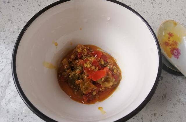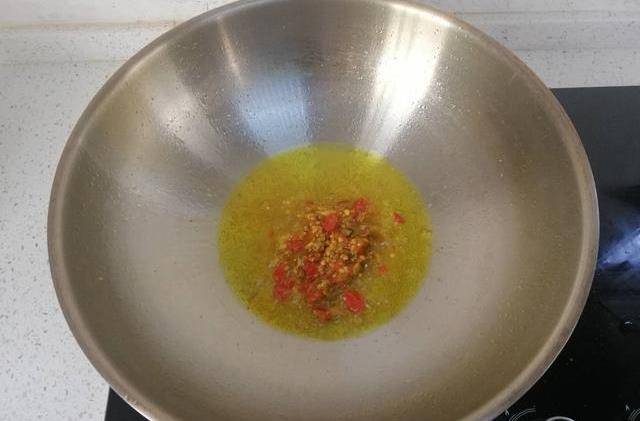 第三步添加辣椒醬,青紅辣椒醬和剁椒魚頭上的辣椒有異曲同工之妙,油香辣椒味道正吃起來也帶勁,整道菜的亮點就靠它來支撐瞭。