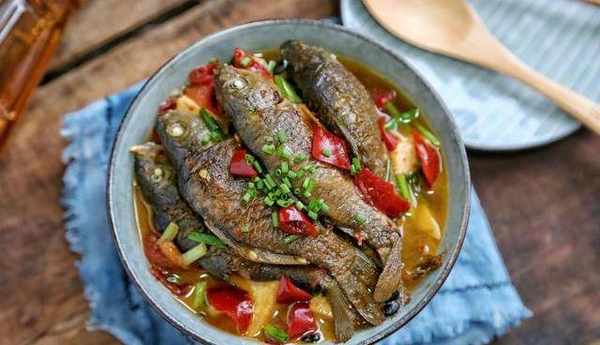 5,放入禾花魚和料酒燜煮6分鐘,調入鹽和蔥花拌勻即可出鍋。