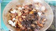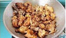 8.鍋內放入雞塊略炒,加生抽、老抽翻炒至雞塊上色。