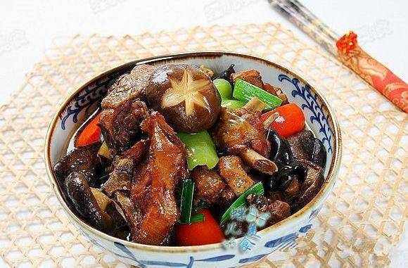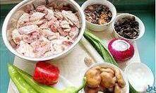 備料:土雞1隻約2千克,鮮香菇250克,水發幹香菇100克,水發黑木耳50克,青椒200克,紅椒100克,蒜苗50克,
