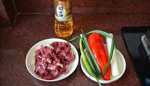食材:山羊肉400克、大蔥1段、蒜苗1根、紅辣椒半根、料酒5毫升、生抽15毫升、鹽3克、水淀粉5克、金龍魚3000ppm谷維素稻米油45毫升、開水半碗。