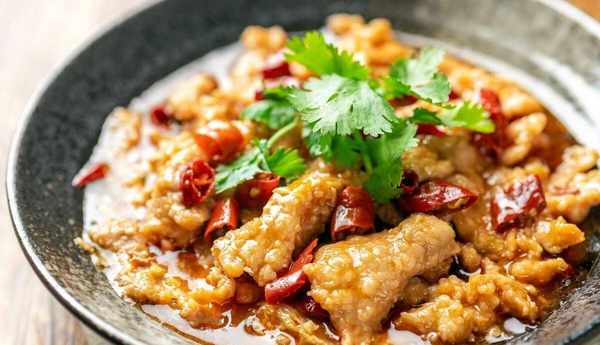 牛肉、蔥段、薑片、一個蛋清、水淀粉、辣椒、花椒、食用油、豆瓣醬、薑末、蒜末、食鹽、胡椒、雞精、香菜