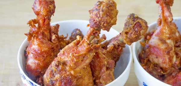 〖 食材清單 〗雞腿3斤、生薑1塊、面粉1勺、玉米淀粉1勺、鹽適量、黑胡椒粉適量、花椒粉適量、泡打粉適量、辣椒粉適量