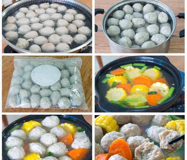 10、撈出來後迅速的放入之前準備好的冰水中過一下,這樣可以讓丸子迅速的降溫,同時讓丸子更加的Q彈,接著撈出丸子後就可以吃瞭。