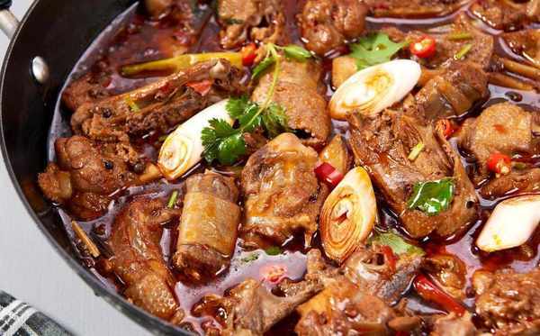 〖 食材清單 〗鵝一隻、料酒、薑片、蔥結、大蔥、1把冰糖、幹辣椒、花椒、香葉、桂皮、2勺生抽、半勺老抽、2勺料酒、1勺鹽、1勺胡椒粉