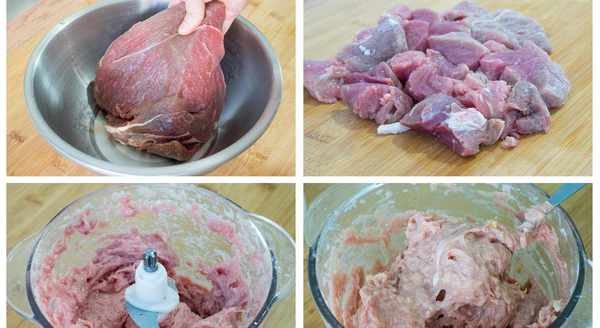 2、接著先把牛肉上面的筋膜去掉,接著再切成小塊兒,切好後直接放入絞肉機;