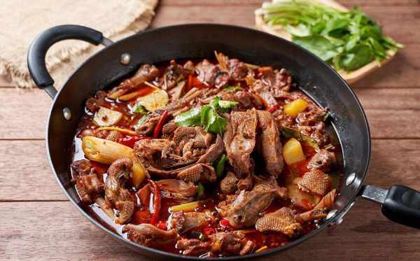 這個雞翅燜面是飯菜一體,面條當主食,雞翅當菜,餅皮非常的薄,而且非常的柔軟勁道。吃的時候把鍋裡的雞翅和湯汁一起淋上去拌勻瞭再吃,這樣餅皮就可以很好地吸收湯汁的味道瞭。