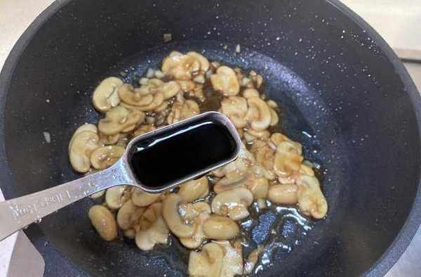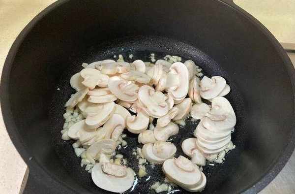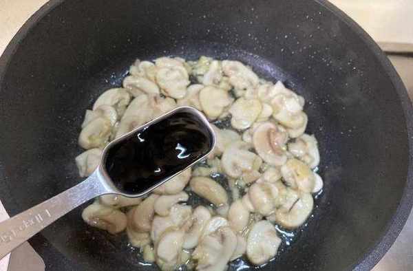7.鍋中放入蘑菇片大火翻炒變軟。