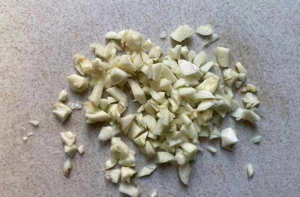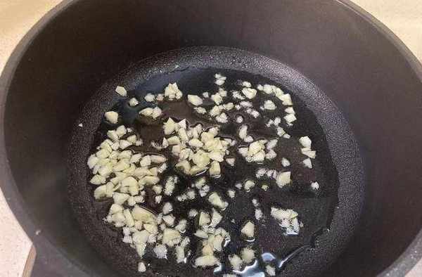 6.熱鍋熱油放入蒜蓉,大火翻炒出香味。