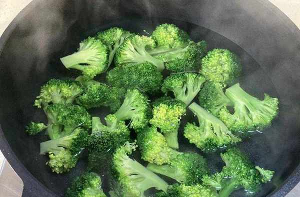 4.鍋中放入一碗水加三克鹽大火煮開,放入西蘭花焯水二分鐘,將西蘭花撈出並瀝幹水分備用。