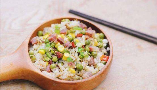 9.待電飯鍋裡看不到明顯的米湯時,將鍋裡的蔬菜丁鋪在米飯上,蓋上電飯鍋蓋,繼續燜煮至跳閘,跳閘後繼續燜10分鐘即可。