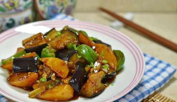馬鈴薯150g茄子150g青椒80g蒜末10g薑末3g蔥段5g蔥花3g醬汁醬油10g蠔油15g料酒10g鹽0.5g糖3g醋2g香油3g清水40g淀粉3g