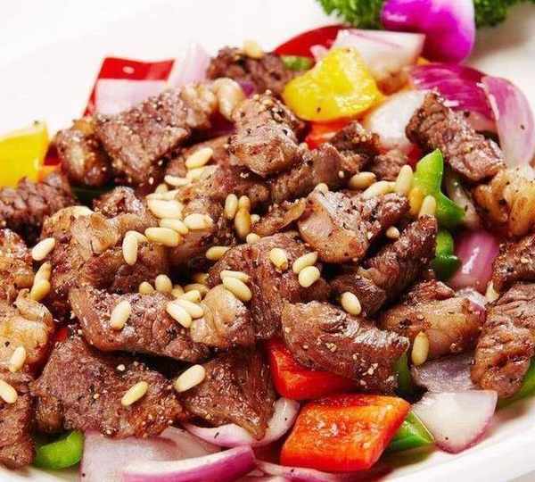 2、 冷鍋放油,燒至八成熱時,將洋蔥和牛肉粒同時入鍋,大火快速翻炒1-2分鐘,牛肉斷生即可;
