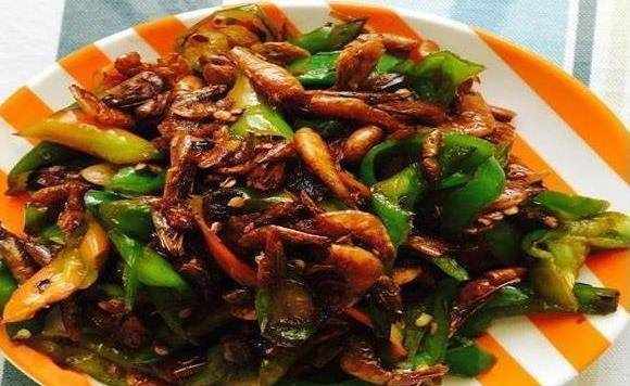 材料:青椒、小幹蝦、幹辣椒、蒜子、花椒、醬油、鹽、薑、蔥