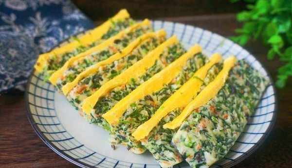 材料:雞蛋4個,菠菜1把,胡蘿卜半根,鹽3克,面粉2小勺。
