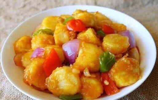 材料:日本豆腐、洋蔥、紅辣椒、香菇、大蒜、蔥、淀粉、生抽、啤酒、蠔油、白糖、白胡椒粉、鹽適量