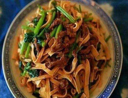 4、先將炒好的豬肉裡脊加入芹菜、豆腐絲,再加餘料、料酒的汁,再用大火快炒幾下,就能出鍋瞭。