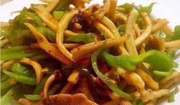 食材: 魷魚幹3隻、青椒2個、蒜五瓣、蒜苗適量、薑片幾片、豆豉適量、油適量、生抽15ml、胡椒粉適量、糖10克、料酒10ml;