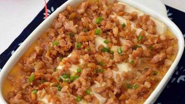 5、放一勺香油和一勺醬油翻炒均勻,鋪在蒸好的豆腐上即可。