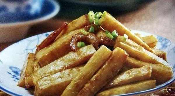 3、小火燜至湯汁將幹,再轉大火翻炒,使湯汁裹住冬筍條;淋上香油,出鍋裝盤即可。