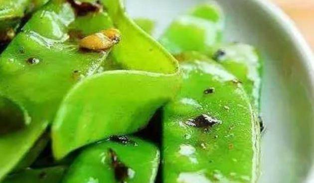 3.荷蘭豆炒至斷生後,加入少許鹽和一勺橄欖菜炒勻即可。