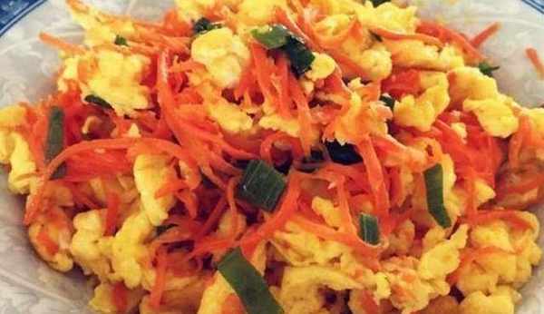 雞蛋炒胡蘿卜:1.胡蘿卜刨絲,蔥切蔥花;雞蛋加少許鹽,打勻;2.鍋中放油,稍稍多一些,放入胡蘿卜絲輕輕拌炒,這時候鍋裡的油就會變的胡蘿卜色;3.將胡蘿卜盛出,油一半盛出,一半留在鍋中;放入雞蛋液;4.雞蛋開始成形立即放入胡蘿卜絲,拌炒;撒蔥花;5.將剩餘的一半胡蘿卜油倒入即可