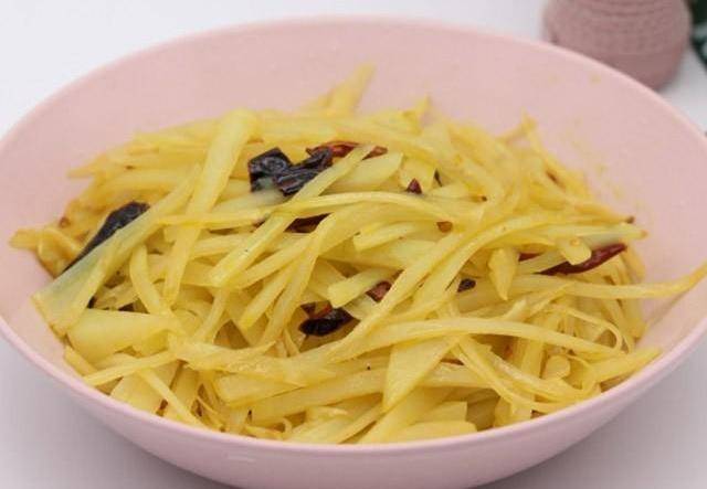 4、倒入土豆絲大火快速翻炒一分鐘。