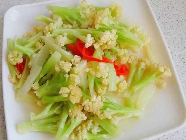 花菜適量、青椒適量、鹽適量、味精適量、白糖適量。