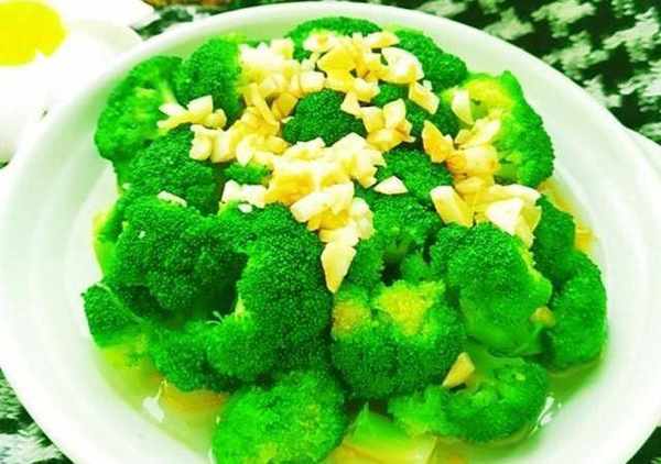 西蘭花一個、大蒜頭適量、油適量、蒸魚汁適量。