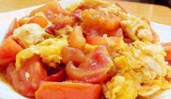 用料:雞蛋3個,西紅柿200克,番茄醬一湯勺、植物油4湯匙,白酒2滴、蒜末一湯勺、鹽適量、白糖1/2湯匙