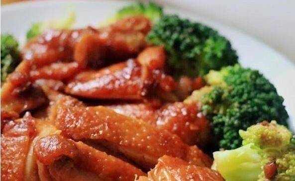 用料:雞腿2個、西蘭花200克、料酒1湯匙、醬油3湯匙、白糖3湯匙、鹽1茶匙;