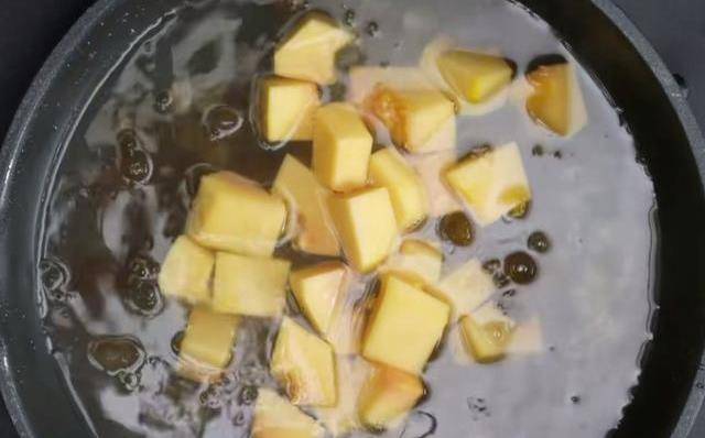 第三步:然後把準備好的木瓜塊倒入鍋中,蓋燉煮三分鐘後,蓋上蓋轉小火燜煮25分鐘。