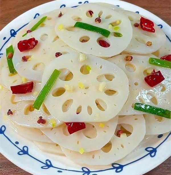 食材準備:蓮藕,生薑,大蒜,幹辣椒,小蔥,鹽,雞精,白糖,白醋,香油等。
