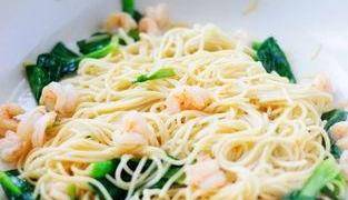 準備食材:方便面1包、蝦6個、雞蛋1個、小青菜3棵。