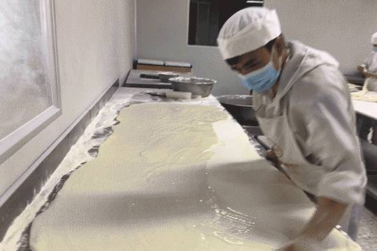 在開酥上,很多工廠都用低成本的植物油或者混合豬油來開酥,這種外皮做出來的破酥包雖然也能起酥,但是易散且燥。