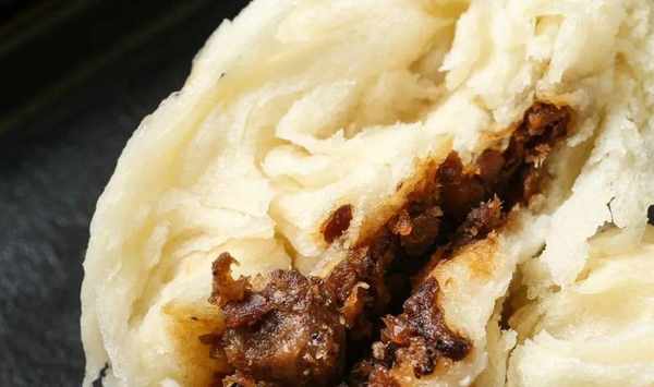 破酥,指的是在揉面時加入豬油,多次開酥制作出來外皮。這樣做成的包子,酥皮分層明顯,柔軟酥松,嚼勁十足。