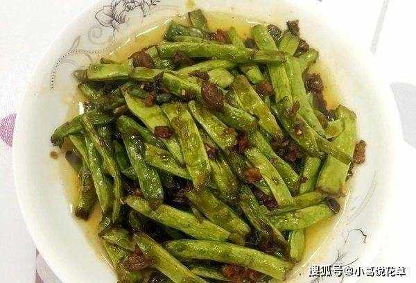 炒四季豆:將四季豆的舊頭尾部分剝掉,然後切成兩半。鍋裡油燒熱,加入四季豆和鹽,中小火炸約3分鐘至表皮酥脆備用,鍋內加入剩餘的油,加入薑蓉,拌入剁碎的蒜。炒香後加入豬肉,用小火將肉炒至出油,顏色變白。加入料酒、生抽、老抽和糖,翻炒約1分鐘。加入預烤青豆和紅辣椒粉,炒約1分鐘。