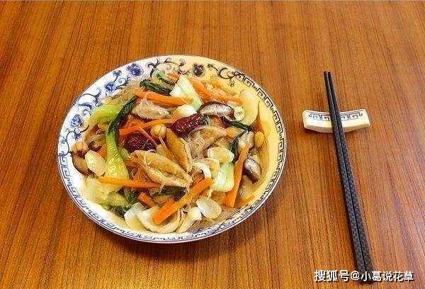 廣東羅漢齋:粉絲、香菇、腐竹提前泡軟,胡蘿卜切段,芹菜切塊,鍋裡油燒熱,加入香菇、腐竹稍微炒一下,備用,鍋裡油燒熱鍋,加入胡蘿卜、芹菜和荷蘭豆炒生,然後加入炒好的香菇和豆芽,最後加入粉絲和所有的菜,煮至收幹。
