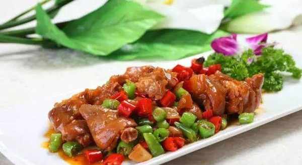 食材:豬蹄,蔥薑蒜,料酒,幹辣椒,花椒,八角,老抽,醋,鹽