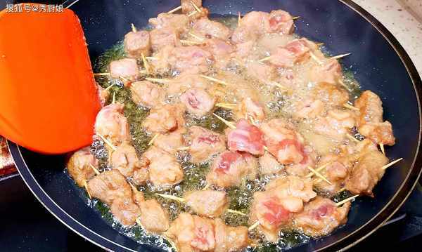 2.熱鍋多加一些油,將油燒至六七成熱後,下入羊肉,快速翻炒,大概炒20秒鐘,看到羊肉變色後,控油撈出。