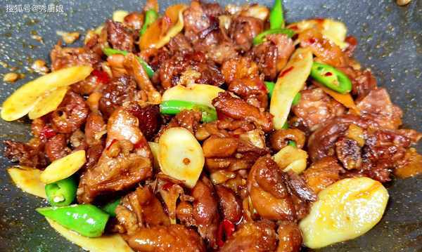2.鍋內留底油,加入薑片、蒜片、小米辣,小火煸炒,炒出香味,倒入鴨肉,加入生抽、蠔油翻炒1分鐘後,加入1瓶青島啤酒,半碗清水,大火煮開後,轉小火燉45分鐘。