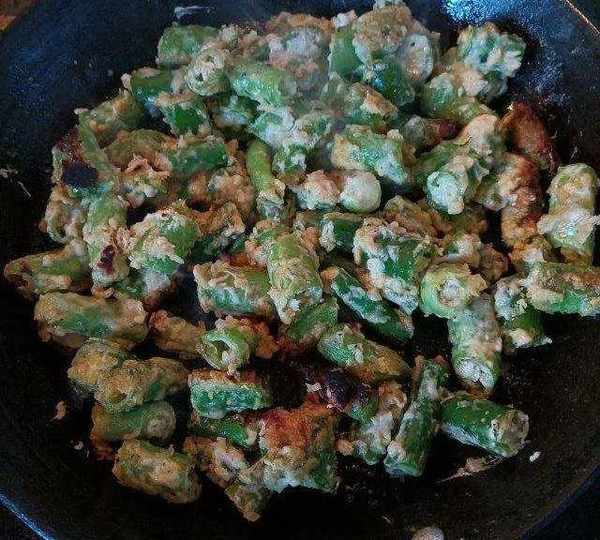 再來少許的面粉和清水,攪拌成面糊,把鍋燒熱燒熱一勺油,把面糊下鍋,中小火煎至兩面金黃,然後將其搗碎,再炒上一分鐘,就可以出鍋啦,口感焦香,營養美味又下飯,你也可以去試試。