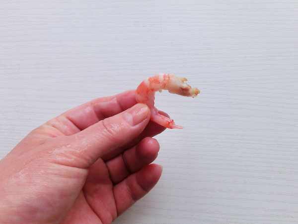 2. 用小勺取出北極蝦的蝦籽,沒有蝦籽的直接去皮