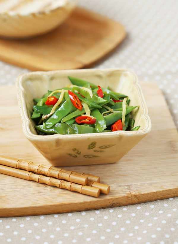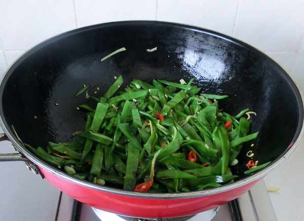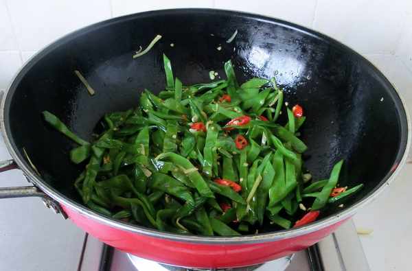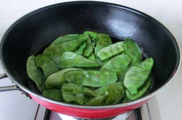 3.鍋中放入清水,水開後下扁豆焯水撈出。